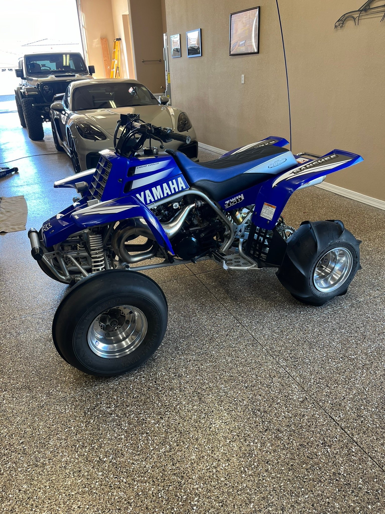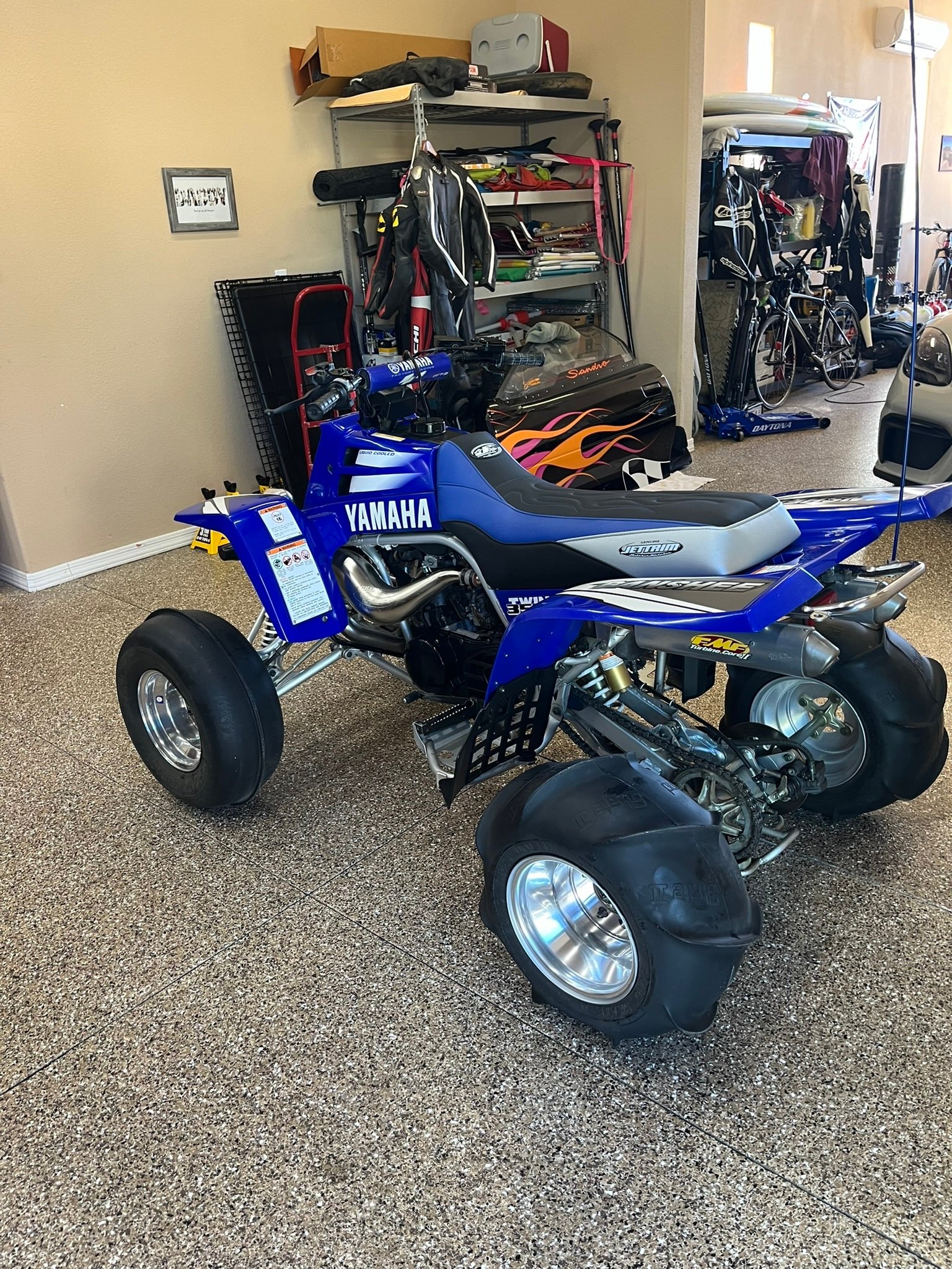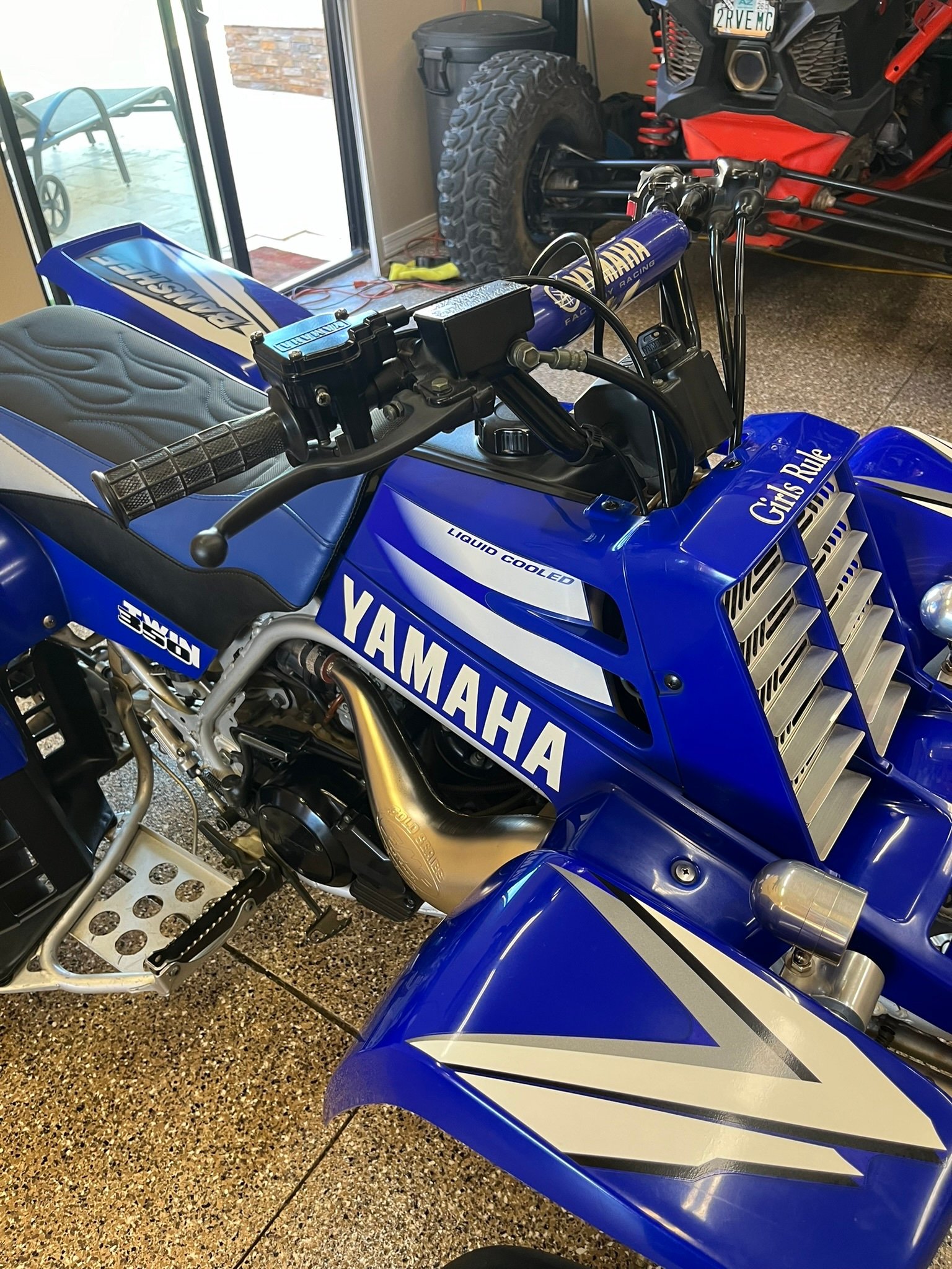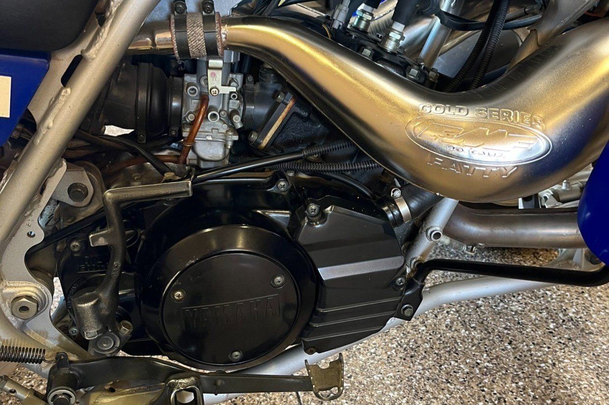 The liquid-cooled 347cc two-stroke parallel twin was factory rated at 34 horsepower and is equipped with a kick starter, dual Mikuni carburetors, and an FMF two-into-two expansion chamber exhaust system. The transmission fluid was flushed, the spark plugs were replaced, and the air cleaner was cleaned in preparation for sale.